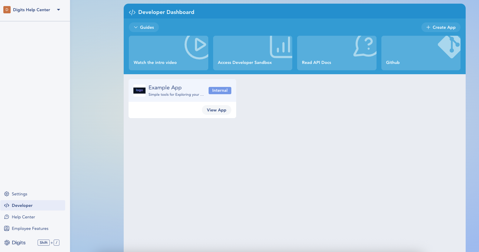 If you already have a Digits account: Open your account and look for the Developer tab in the left sidebar.